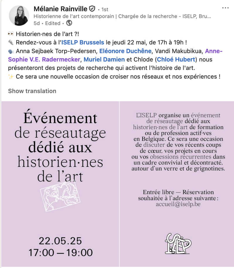 The MOOVA team will give a presentation on informal expertise online for art historians at ISELP (Brussels)
